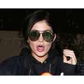 Kylie Jenner wears sunglasses at night on her way to dinner in Calabasas, on Friday.