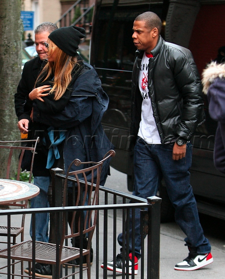 Beyonce and Jay-Z took daughter Blue Ivy out today in New York, for the first time since she came home from the hospital. Looks like the 7-week-old Blue is warm and snugly against her mom in that black Donni Charm scarf! Too cute!
