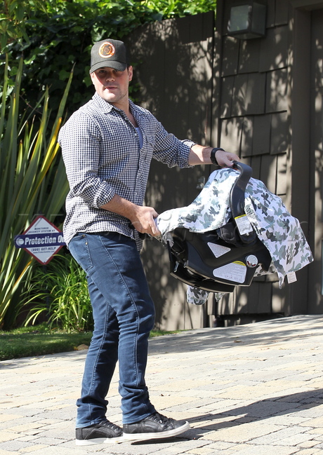 Proud mom Hilary Duff looked fierce in hot pink pants, a white tee and layers of colorful necklaces as she toted her $3,000 Celine black leather bag, while hubby Mike Comrie carried their baby son to a daytime fiesta in LA, on Saturday afternoon.