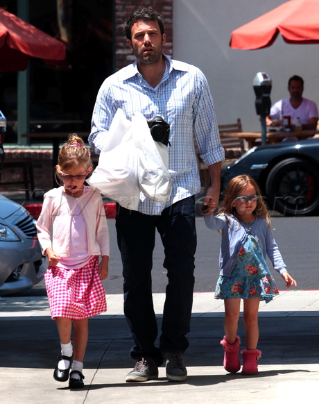 Just call him Mr. Mom! Ben Affleck and Jennifer Garner left their new baby boy Samuel at home on Saturday to spend some quality time with the little ladies in their lives. The Argo star and his wife took daughters Violet and Seraphina out to run errands in the Pacific Palisades, and it's hard to believe that just a few short years ago, the hunky Boston native was galavanting on yachts with then-girlfriend Jennifer Lopez. He's Benny from the Block no more!