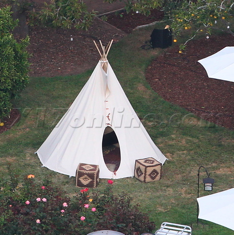 In keeping with the groom's Jewish faith, the couple was married under a custom-made chuppah, and the ceremony was performed by Kopelman's rabbi. The backyard had hippie-chic teepees and floral arrangements included "hydrangeas, small irises, cream and pink roses and lavender lilies," according to Us Weekly.