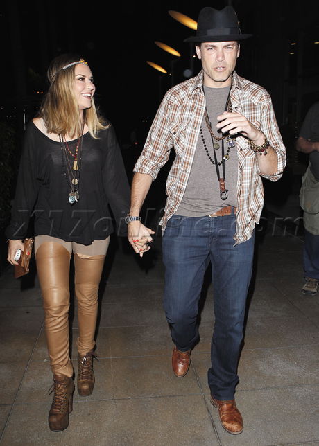 Charlie Sheen's stunning ex-wife enjoyed a posh dinner at Sushi Ike in Hollywood with her new boyfriend, country star Jaron Lowenstein, but she appeared to be having a bit of trouble with her sexy high-heeled boots!
