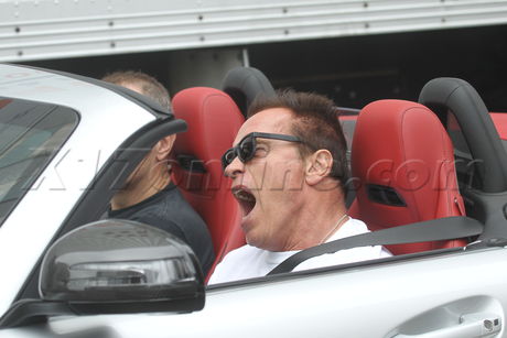 EXCLUSIVE PHOTOS - Arnold Schwarzenegger Looks A Little Tired Behind The Wheel
