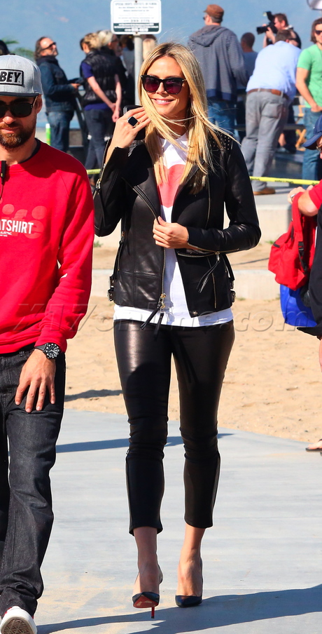 We're lovin' how Heidi paired her skintight leather pants with a casual shirt under a studded leather jacket ... and of course, black Louboutins!