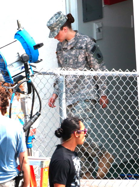 On Thursday X17 photographers snapped K. Stew on the set of her new film Camp X-Ray, in which she is set to play an American soldier stationed at Guantanamo Bay who ends up having a relationship with an inmate. From walking around in full fatigues to sweating it out at boot camp, she's definitely got the look down pat!