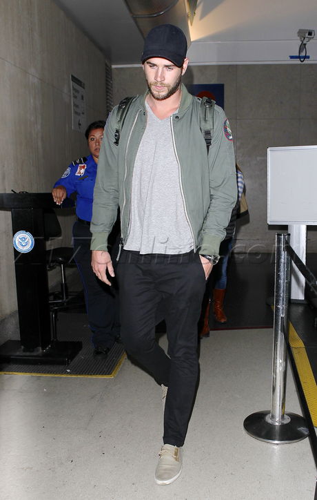 On Tuesday evening Liam Hemsworth flew in to LAX from New York City, and the Aussie hottie wasn't in the mood to smile when he collected his bags and headed home. Funny, because earlier in the day he was all smiles when he posted for pictures outside of Letterman: