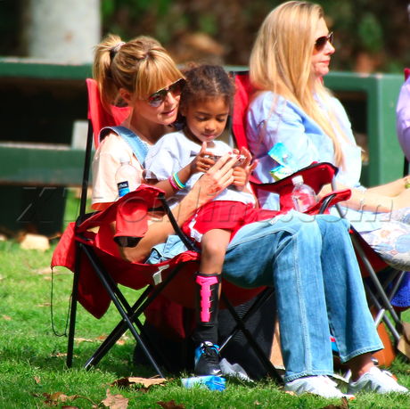 On Saturday Heidi Klum took her army of kids to their soccer matches in Brentwood, and while her sons were playing, Heidi snuggled up to her youngest daughter Lou.