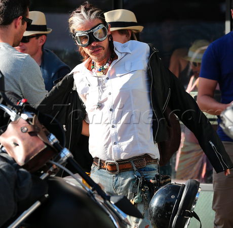 The musician was all over the place this weekend. On Saturday, Tyler garnered a lot of attention when he wore goofy goggles, a studded and embossed helmet and hopped on his bike in front of Gjelina in Venice on Saturday.