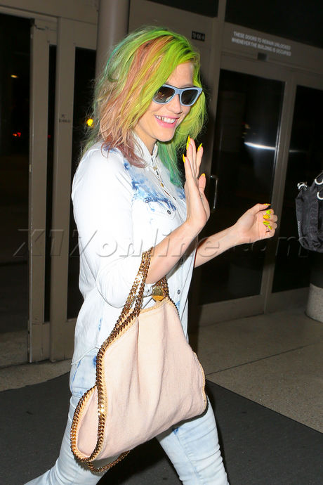 On Wednesday night Kesha landed at Los Angeles International Airport, and the recently rehabbed pop singer smiled sweetly for the cameras. We preferred the pink hair she was rocking a few weeks ago, but as long as she's in a good mood, that's what really matters!
