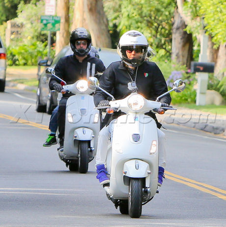 Gwyneth Paltrow and Chris Martin took their kids Apple and Moses for a ride around Brentwood on their matching Vespas yesterday, and it certainly seems like these two are either playing nice for the sake of their family or contemplating a reconciliation!