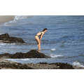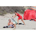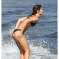 The actor's recent hookup strutted her stuff in a bikini on the beach.