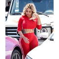On Monday morning, the curvy lade made sure all eyes were on her when she stepped out in Los Angeles' Fashion District in a red crop-top ensemble complete with racing stripes down the side.