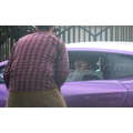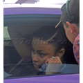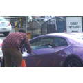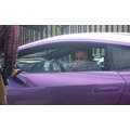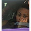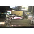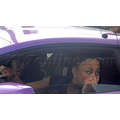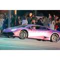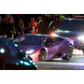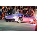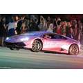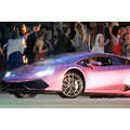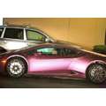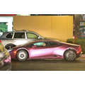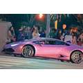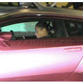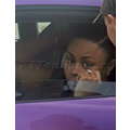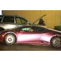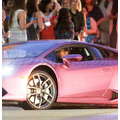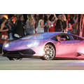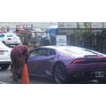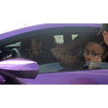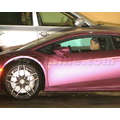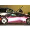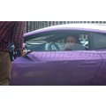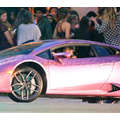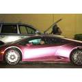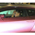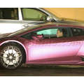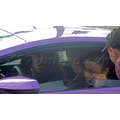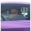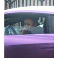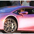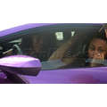 The pregnant reality star drove her purple Lambo to the studio.