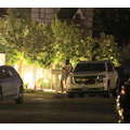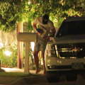 After getting suspended from play for four games on Tuesday, Clippers forward Blake Griffin, who was sporting a cast on his injured arm came out of hiding last night in front of his home in Los Angeles, Calif.