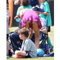 NOT appropriate! On Sunday Brandi Glanville bent over and flashed her butt at sons Mason and Jake's soccer game.