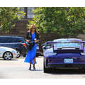 Caitlyn Jenner wore a bright blue dress to a pal's baby shower on Sunday. Gorgeous!