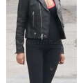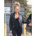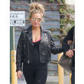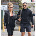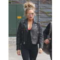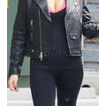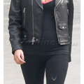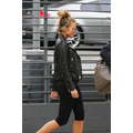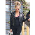 Chrissy Teigen tries to conceal her growing baby bump beneath a leather jacket after working out with John Legend.