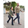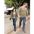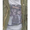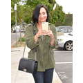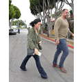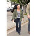 The singer, who donned a pair of flares and an AC/DC shirt and an army jacket, made her way into a Los Angeles office building as she prepares for her The Future Now tour with Nick Jonas, which begins on June 29 in Atlanta, Georgia.