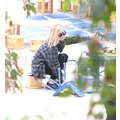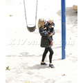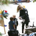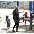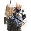 Fergie shows off her cute new lob with her cute boy Axl at the park.