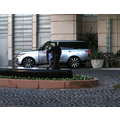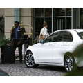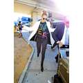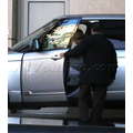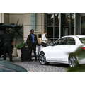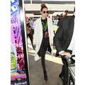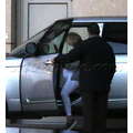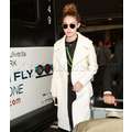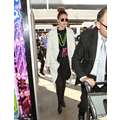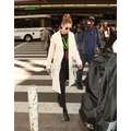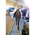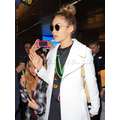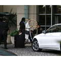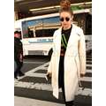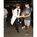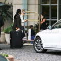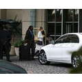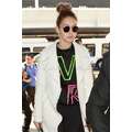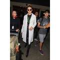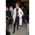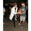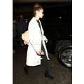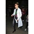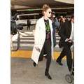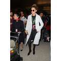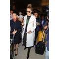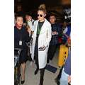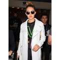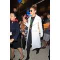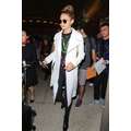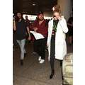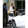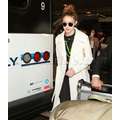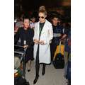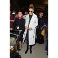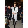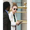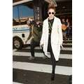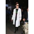 Wearing a long white coat, black leggings and a YSL purse, Gigi Hadid headed into her mom's new apartment building right after touching down on Thursday.