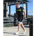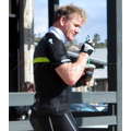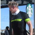 Gordon Ramsay straddles his two-wheeler to work off some of that yummy food!