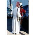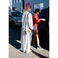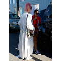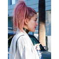 Hailey Baldwin shows off her pink hair and her lean legs in Los Angeles on Thursday.