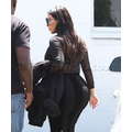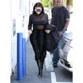 Kim Kardashian and Kylie Jenner wear dark and stormy ensembles to visit the studio in Burbank, Calif., on Wednesday.