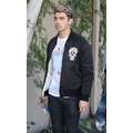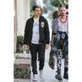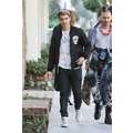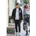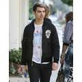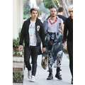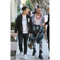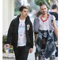 The middle JoBro showed off his lavender locks, which looks a lot like the Biebs' new 'do, when he hung with his band mate and friends in Beverly Hills on Monday.