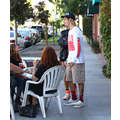 The singer asked random strangers if they were "fired up" as he walked to get his java.