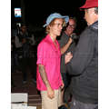 Justin Bieber Shows His Wacky Fashion Sense In A Pink Shirt With Matching Socks And Shower Slides