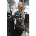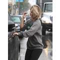Kaley Cuoco gets caught in the rain on Tuesday.
