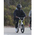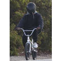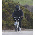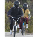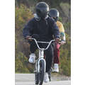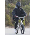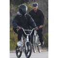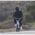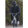 After getting out of rehab and leaving Kim at the couple's Bel Air mansion, Kanye West was spotted riding a bike -- while wearing a motorcycle helmet.