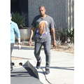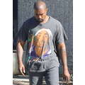 A grumpy Kanye West was photographed wearing a Tupac tee on Sunday afternoon in Beverly Hills.