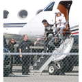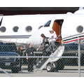Kim Kardashian returned to LA with mom Kris and the kids on Thursday via a private plane.