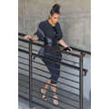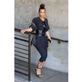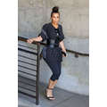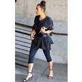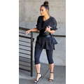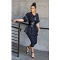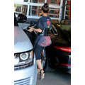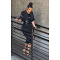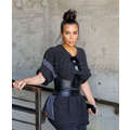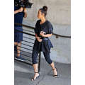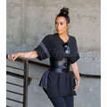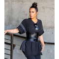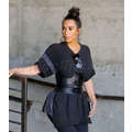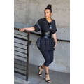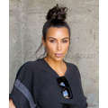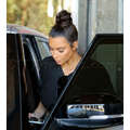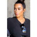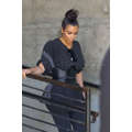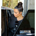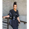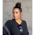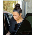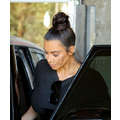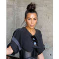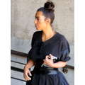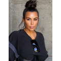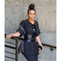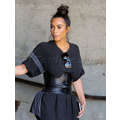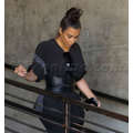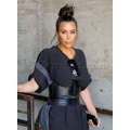 Kim Kardashian wears a leather corset with a Life of Pablo tee.