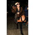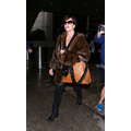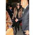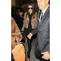 The model and her momager wore leopard and fur for their travel day.