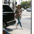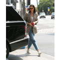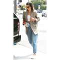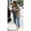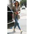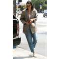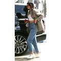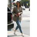 The supermodel wore an oversize blazer and jeans on her errand run.