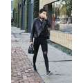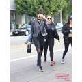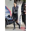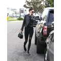 On Wednesday, Kendall Jenner went matchy matchy with her lookalike bestie -- both of them wearing the same paneled leggings to get their daily caffeine fix at Alfred Coffee in West Hollywood, Calif.