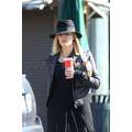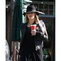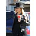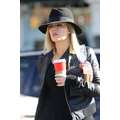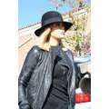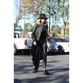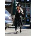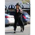 The reality star rocked Yeezy running shoes and a fedora with her spandex.