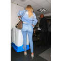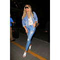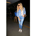 Khloe Kardashian shows off her body in a lingerie-inspired outfit at LAX on Thursday.