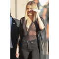 Khloe Kardashian wears a sheer ensemble for an appearance at Jimmy Kimmel Live! in Hollywood on Friday.