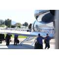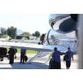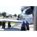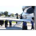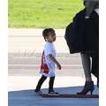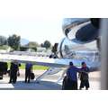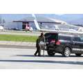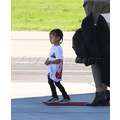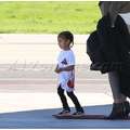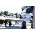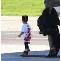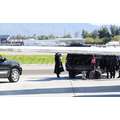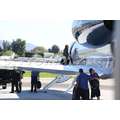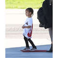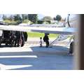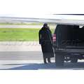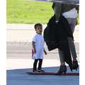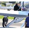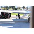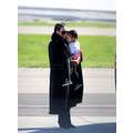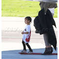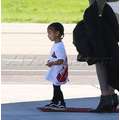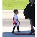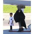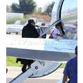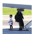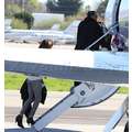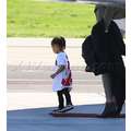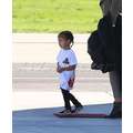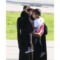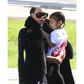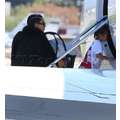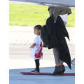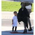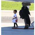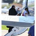 With her hands full, Kim Kardashian carried daughter North West and son Saint onto the private jet in Van Nuys, Calif., on Tuesday.