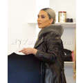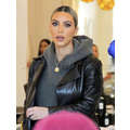 Kim Kardashian Gives Us Major Matrix Vibes In Spandex Biker Shorts And A Leather Jacket