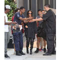 Kim Kardashian Rocks A Pablo T-Shirt Dress And Baggy Leather Thigh Highs In NYC