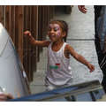 After taking Nori to a sushi lunch with Kanye West, Kim Kardashian met up with big sister Kourtney and they took their children to a birthday party.