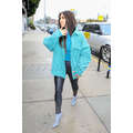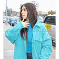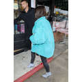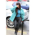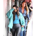 Kim Rocks Yeezy 2XU Calabasas Wetsuit Leggings With A Teal Coat While Filming KUWTK