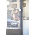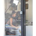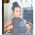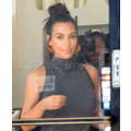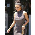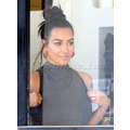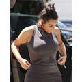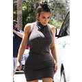 Kim Squeezes Herself Into A Tight Mini Dress To Film Scenes At The Salon