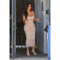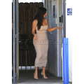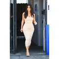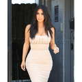 Kim Kardashian shows off her post-baby weight loss in a seriously body con nude dress.