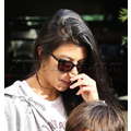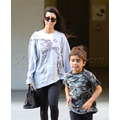 Kourtney Kardashian hides behind her hair during an errand run with son Mason amid reports she's dating super model Jourdan Dunn's ex boyfriend Younes Bendjima.