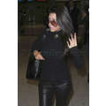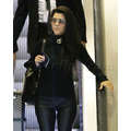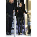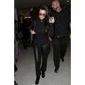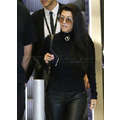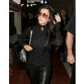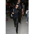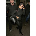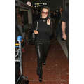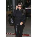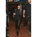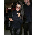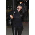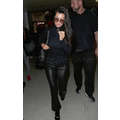 Kourtney Kardashian wore some sexy skintight leather pants as she arrived at Paris Charles de Gaulle airport for Paris Fashion Week on Wednesday night.